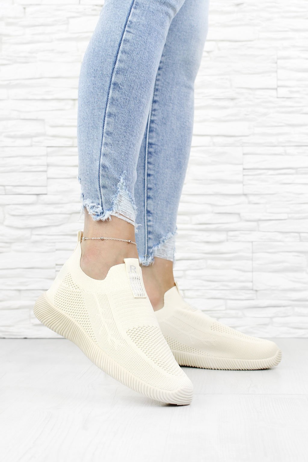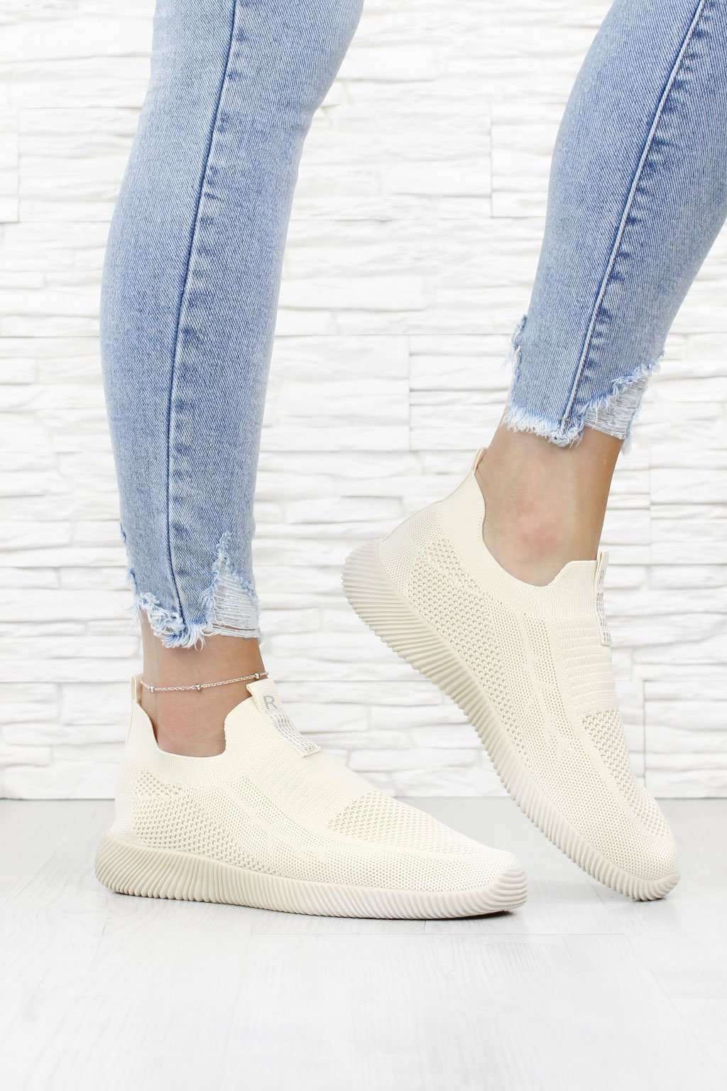 Tyto tenisky spojují neutrální béžovou barvu s moderním ponožkovým střihem. Jsou nejen stylové, ale také snadno obuvatelné. Béžová barva jim dodává nadčasový vzhled, který se hodí ke každé příležitosti. Pohodlnost a jednoduchost se stávají hlavním heslem této obuvi.