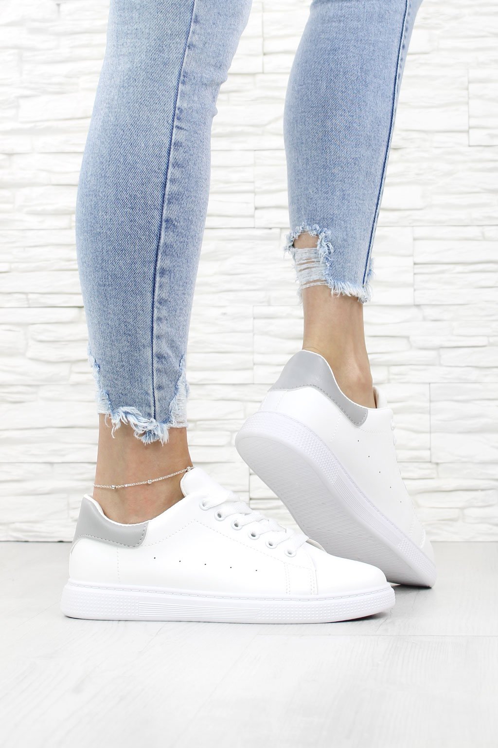 Sneakers tenisky s šedým detailem na patě jsou tím pravým spojením stylu a pohodlí. S jejich čistým a moderním designem budete vždy vypadat skvěle, ať už jdete do města nebo na relaxační procházku. Tyto tenisky jsou symbolem nadčasové elegance a nesmírně pohodlného kroku. Vyzkoušejte je.