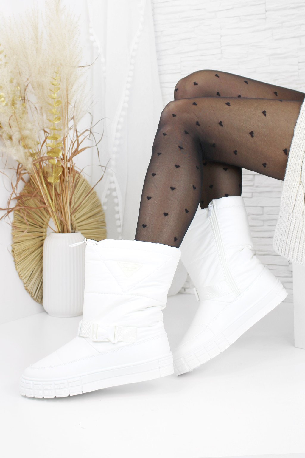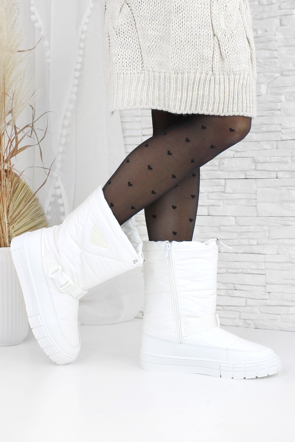 Zimní dny si žádají nejen pohodlí, ale i šik vzhled – a tyto bílé vyšší sněhule splňují oba požadavky. S platformou o výšce 3 cm vám dodají trochu výšky, zatímco zateplení kožíškem uvnitř zajistí teplo a komfort po celý den, i když venku mrzne.