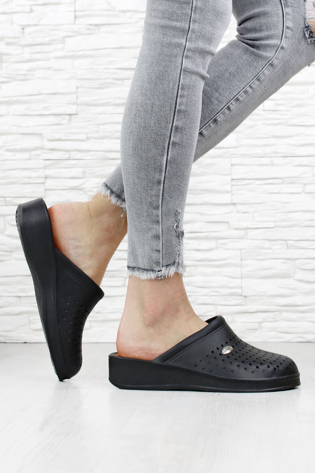 Černé pantofle na klínku