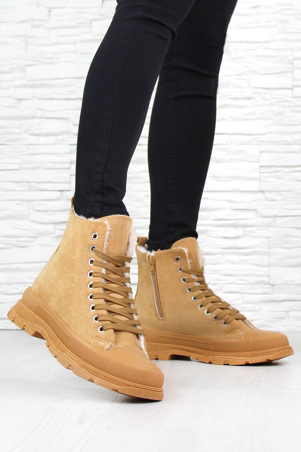 Krásné hnědé kotníkové tenisky s bílým kožíškem uvnitř jsou dokonalým spojením elegance a tepelného pohodlí pro chladnější období. Jejich teplý a svěží vzhled v kombinaci s bílým kožíškem vytváří nejen atraktivní, ale i funkční obuv, která zaručuje, že vaše nohy zůstanou v teple a pohodlí.